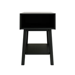 Add stylish storage to any space with our Mid-Century Side Table with Storage. Inspired by the clean lines of mid-century design, this side table features a sleek silhouette with angled legs, modern neutral finishes, and built-in storage for all your essentials. Durable melamine construction and non-toxic, low VOC finishes offer a premium look and exceptional durability, while flush, color-matched hardware creates a clean, modern look. Bring functional style to your home with this mid-century-inspired accent piece.